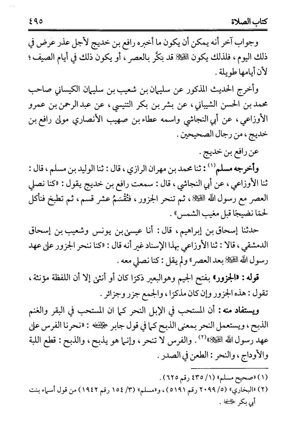 حدثنا إسحاق بن إبراهيم، قال: أنا عيسى بن يونس وشعيب بن إسحاق الدمشقي، قالا: ثنا الأوزاعي بهذا الإسناد غير أنه قال: "كنا ننحر الجزور على عهد رسول الله - عليه السلام - بعد العصر" ولم يقل: كنا نصلي معه.