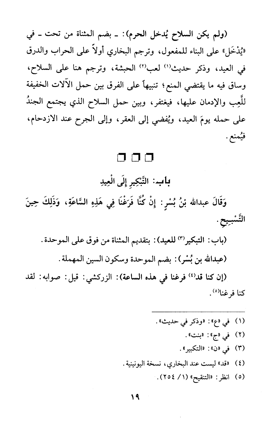 (باب: التبكير (¬3) للعيد): بتقديم المثناة من فوق على الموحدة.