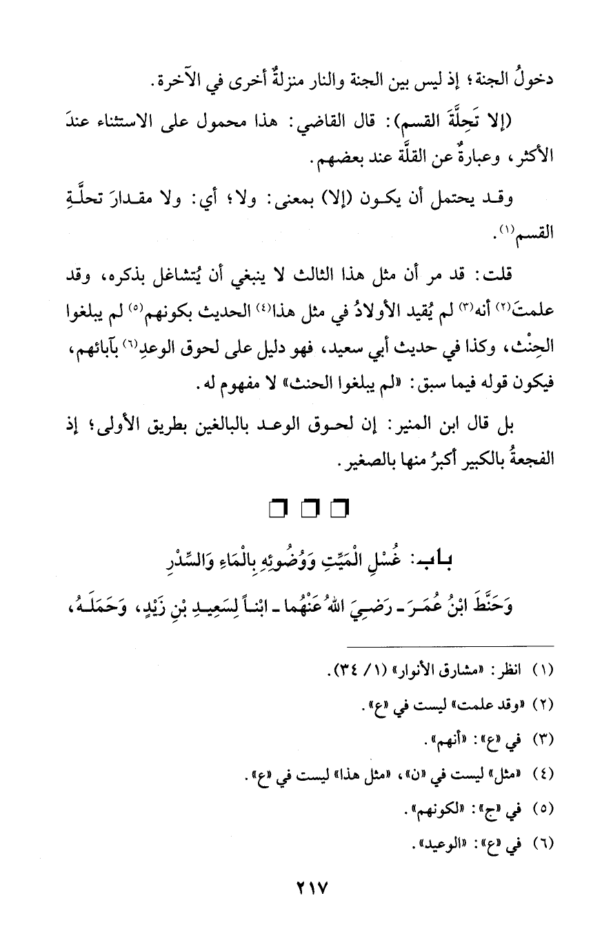(لا تَحِلَّةَ القسم): قال القاضي: هذا محمول على الاستثناء عندَ الأكثر، وعبارةٌ عن القلَّة عند بعضهم.