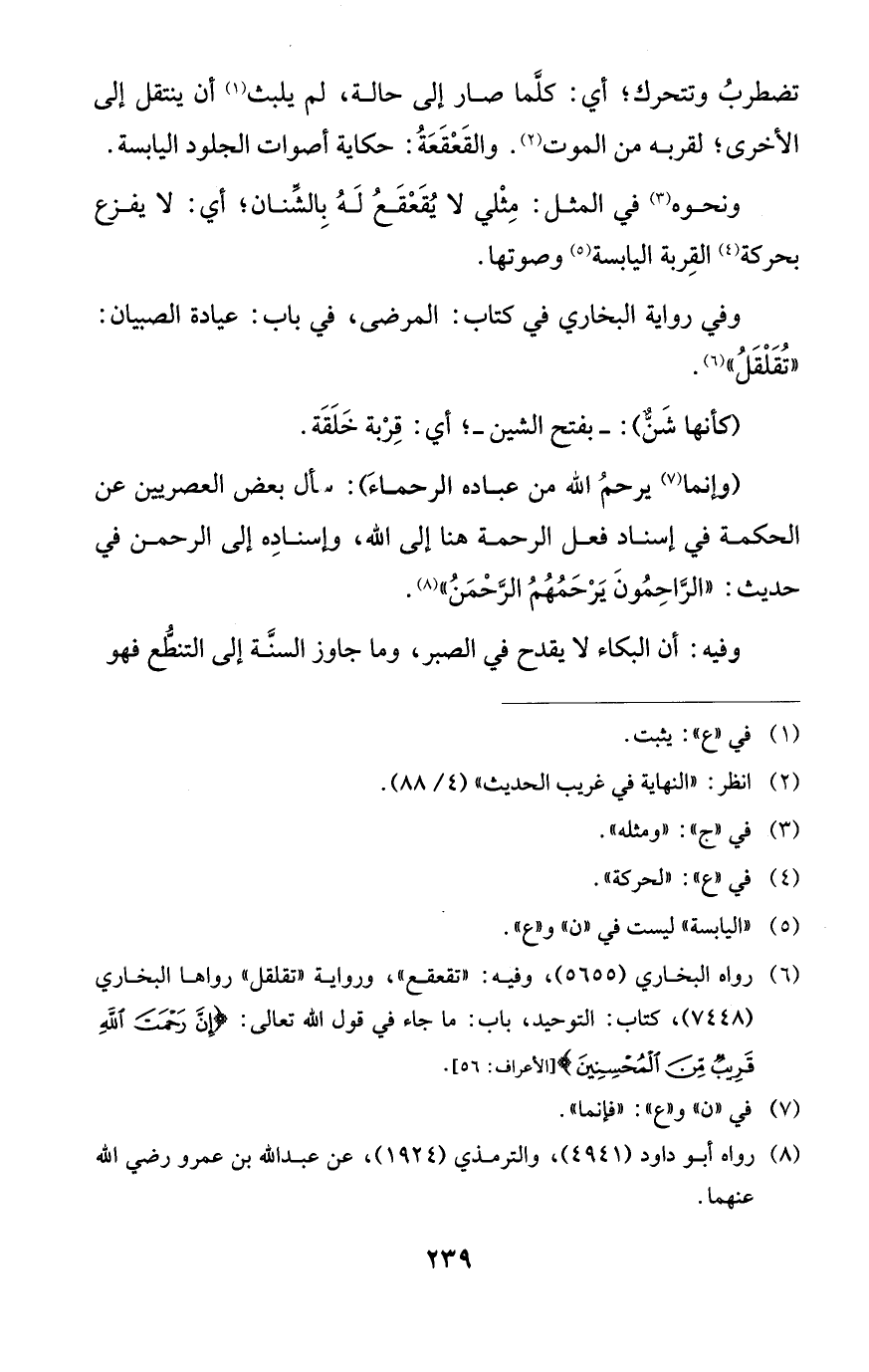 (¬6) رواه البخاريّ (5655)، وفيه: "تقعقع"، ورواية "تقلقل" رواها البخاريّ (7448)، كتاب: التّوحيد، باب: ما جاء في قول الله تعالى: {إِنَّ رَحْمَتَ اللَّهِ قَرِيبٌ مِنَ الْمُحْسِنِينَ} [الأعراف: 56].