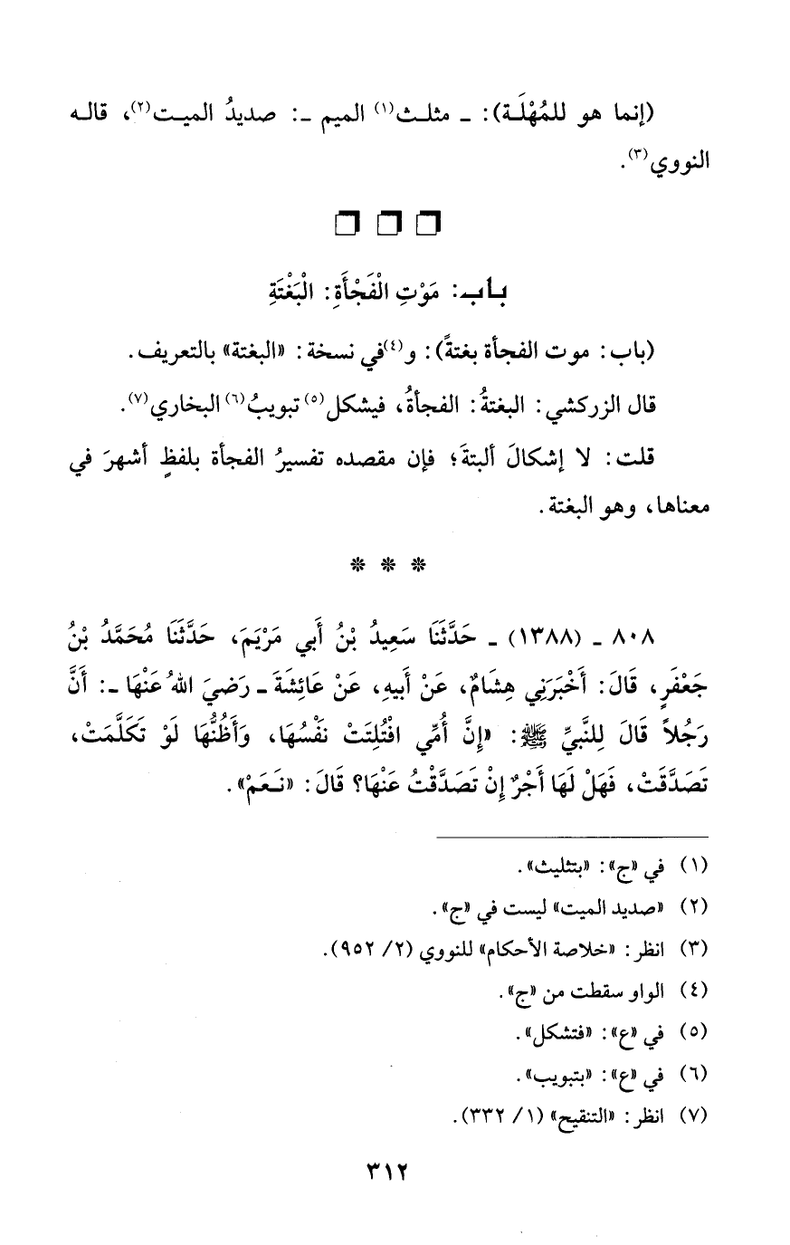 (باب: موت الفجأة بغتةً): و (¬4) في نسخة: "البغتة" بالتعريف.