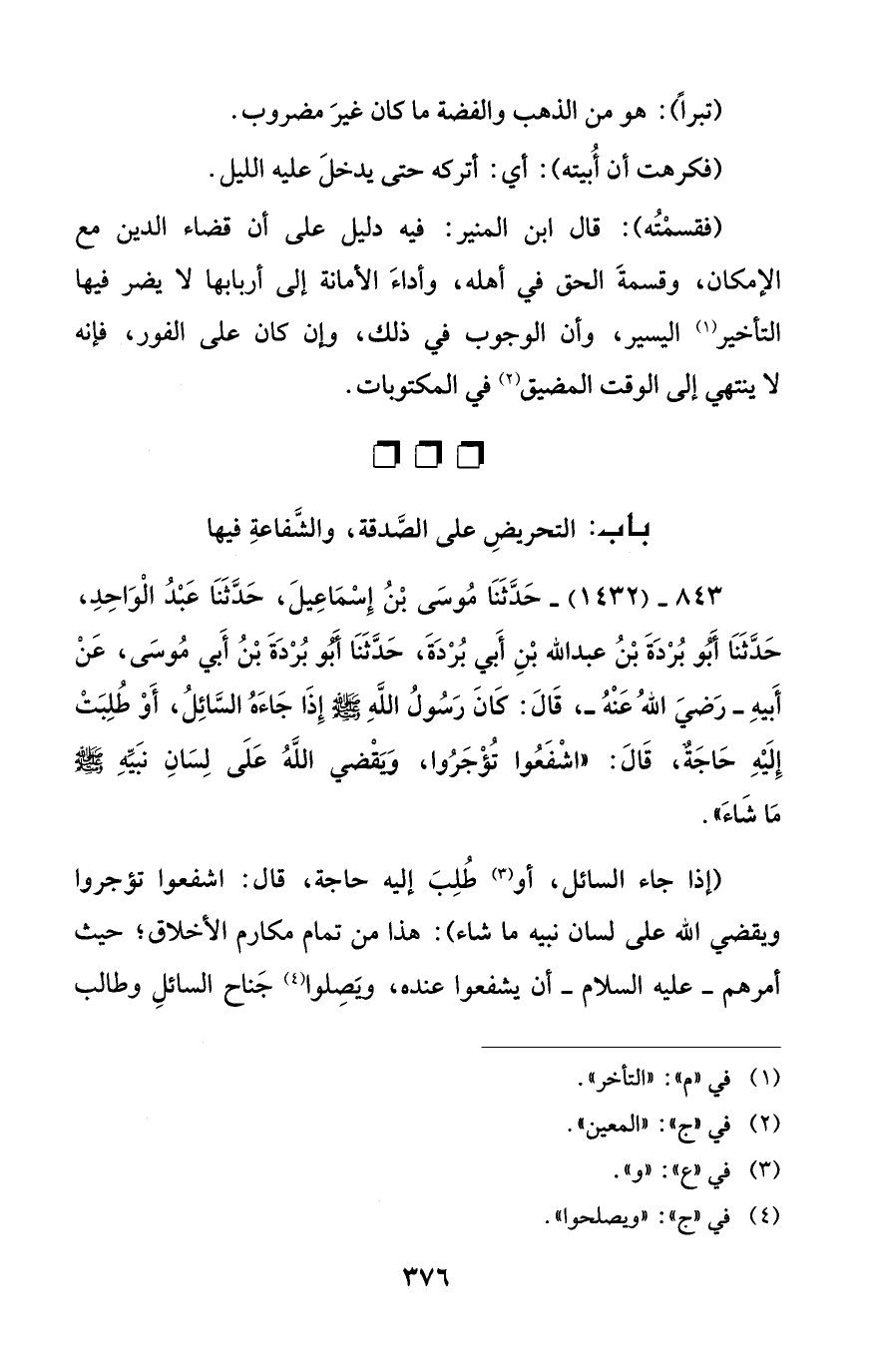 باب: التحريضِ على الصَّدقة، والشَّفاعةِ فيها