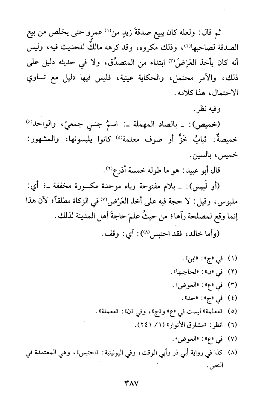 ثم قال: ولعله كان يبيع صدقةَ زيدٍ من (¬1) عمرٍو حتى يخلص من بيع الصدقة لصاحبها (¬2)، وذلك مكروه، وقد كرهه مالكٌ للحديث فيه، وليس أنه كان يأخذ العَرضَ (¬3) ابتداء من المتصدِّق، ولا في حديثه دليل على ذلك، والأمر محتمل، والحكاية عينية، فليس فيها دليل مع تساوي الاحتمال، هذا كلامه.