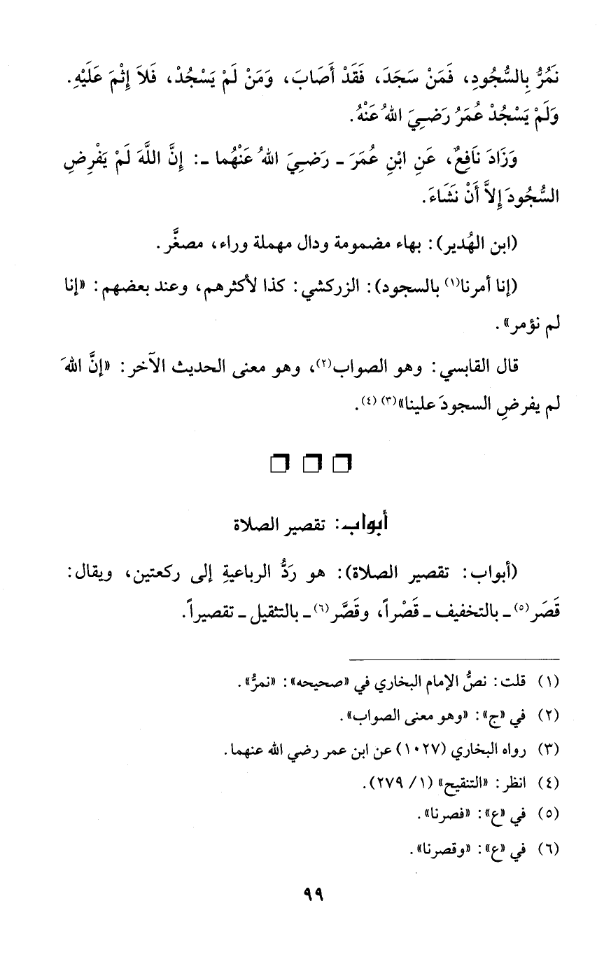 (أبواب: تقصير الصلاة): هو رَدُّ الرباعيةِ إلى ركعتين، ويقال: قَصَر (¬5) - بالتخفيف -قَصراً، وقَصَّر (¬6) - بالتثقيل- تقصيراً.