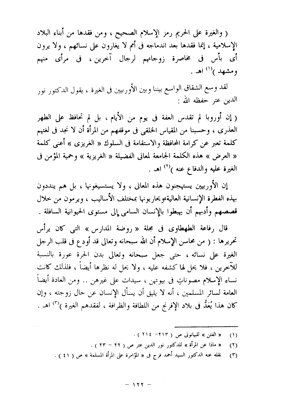 * ويَعُدُّ الإسلام الدفاع عن العرض، والغيرة على الحريم جهادا يبذل من أجله الدم، ويضحى في سبيله بالنفس، ويجازي فاعله بدرجة الشهيد في الجنة.