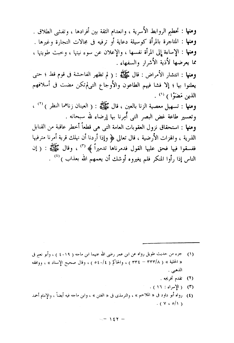 في حديث أسامة رضي الله عنه قال صلى الله عليه وسلم: "ما تركت بعدي فتنة أضر على الرجال من النساء" (2)