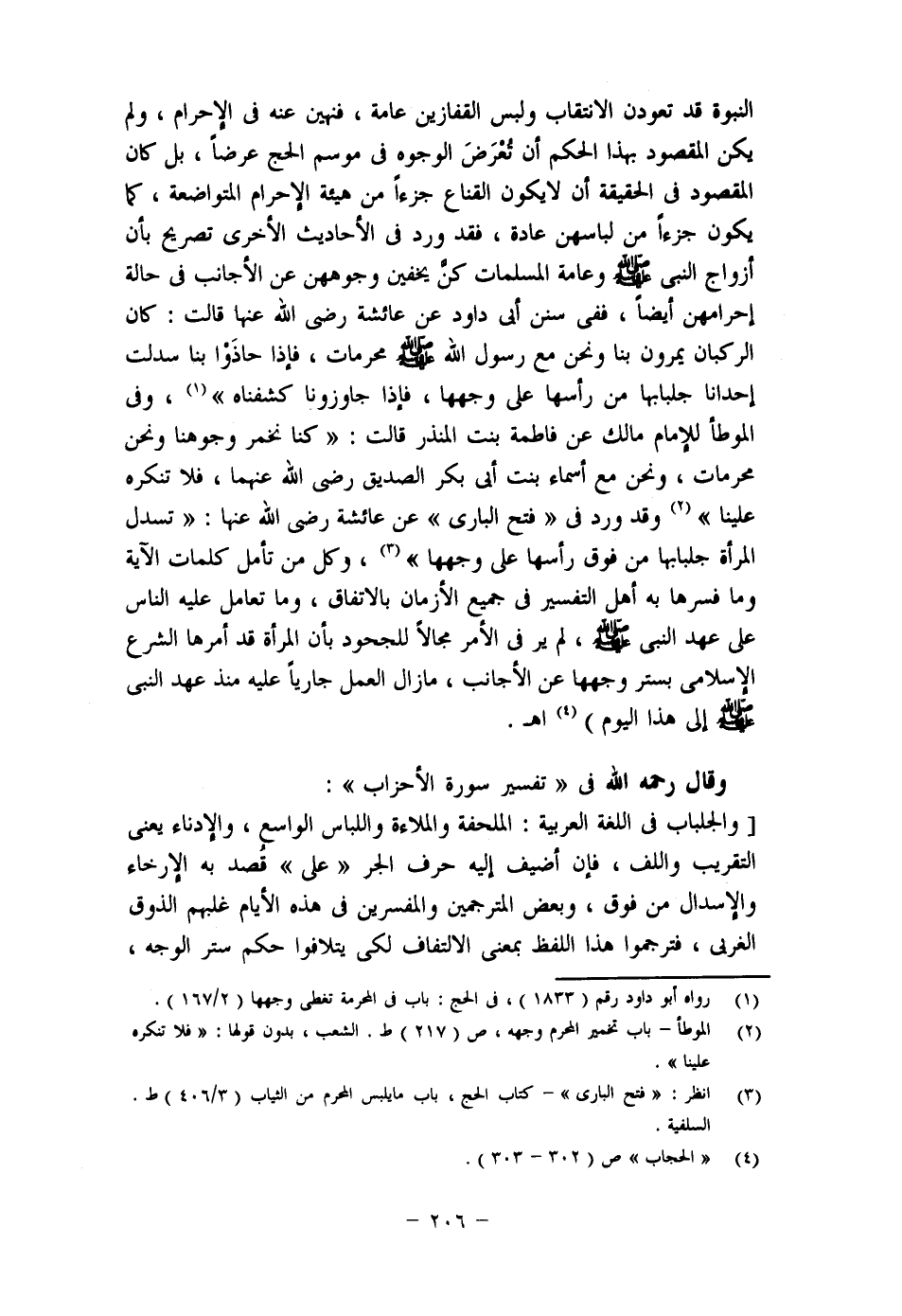 (1) يتضح من هذا أن الإمام أبا حيان رحمه الله يذهب إلى التسوية بين الحرائر والإماء في حكم الجلباب الشامل للوجه والكفين، بناء على عدم وجود دليل