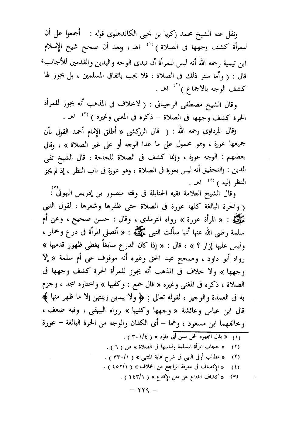 فالرواية التي فيها، الصراحة ببيان الزي هى ما رواه أبن سعد عن محمد ابن كعب القرظى قال: كان رجل من المنافقين يتعرض لنساء المسلمين يؤذيهن، فإذا قيل له، قال: "كنت أحسبها أمة"، فأمرهن الله أن يخالفن لفي الإماء، ويدنين عليهن من جلابيبهن تخمر وجهها إلا إحدى عينيها، يقول: (ذَلِكَ أَدْنَى أَنْ يُعْرَفْنَ فَلَا يُؤْذَيْنَ) ، يقول ذلك أحرى أن يعرفن (1) ويقرب منها الرواية التي رواها ابن جرير، ونقلها فضيلة الدكتور الهلالي فإن فيها تفسير (يُدْنِينَ) بكلمة: يتقنعن، والتقنع يطلق على تغطية الوجه، ومنه مقنع الكندي، سمى مقنعا لأنه كان لا يخرج إلا وعلى وعلى وجهه ستر (2) .