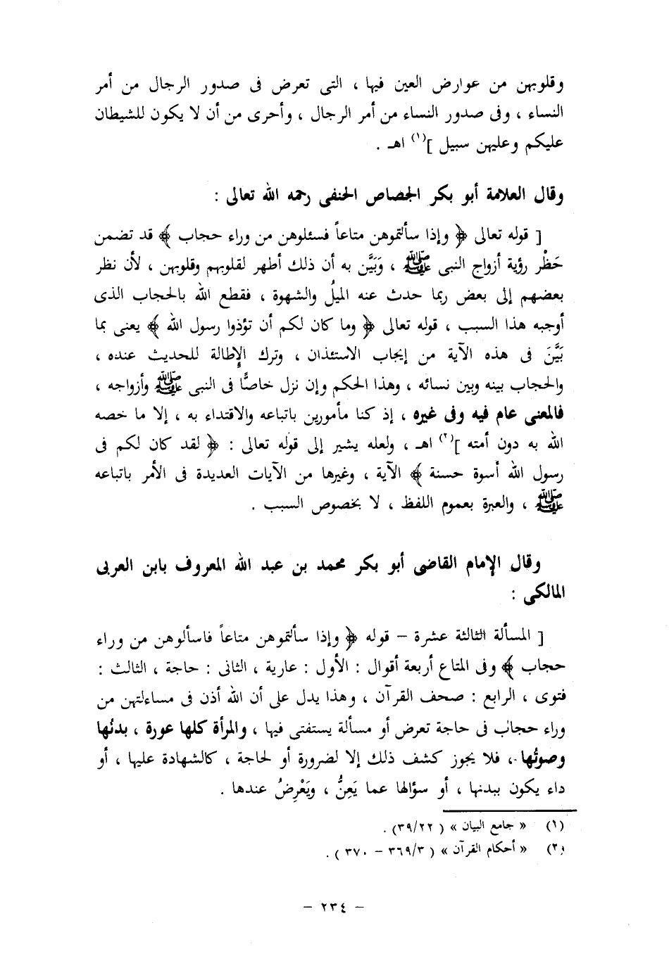 ستر الوجه والكفين بوجه، ولا يقدر أحد أن يقول أن أولئك كانوا يجهلون معنى هذه الآية، ويتواطئون على خلاف ما دلت عليه) اهـ