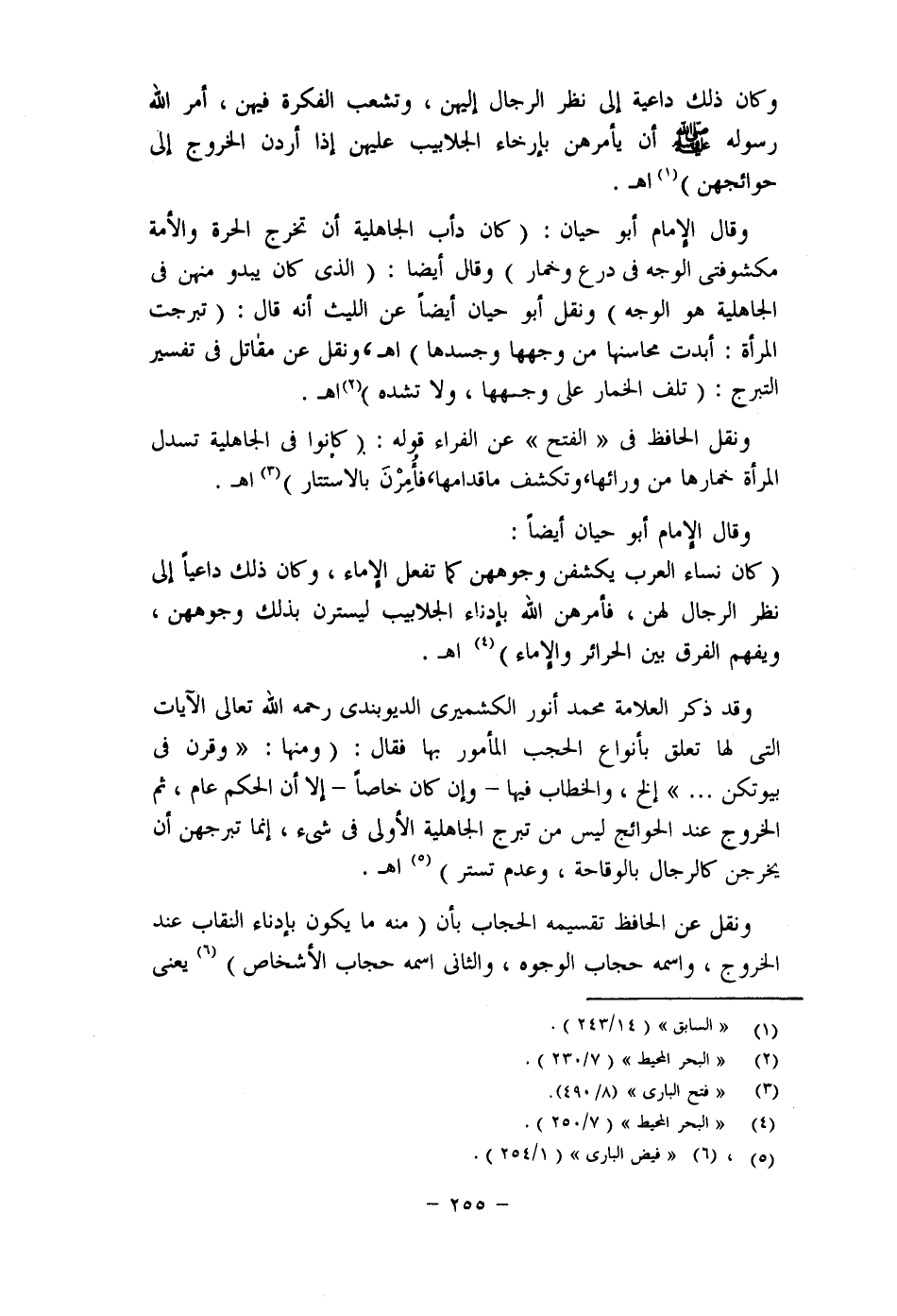 وقال أيضُا: "وكانت النساء قبل نزول هذه الآية يبرزن للرجال (1) اهـ، يعني قوله تعالى (وَإِذَا سَأَلْتُمُوهُنَّ مَتَاعًا) الآية.