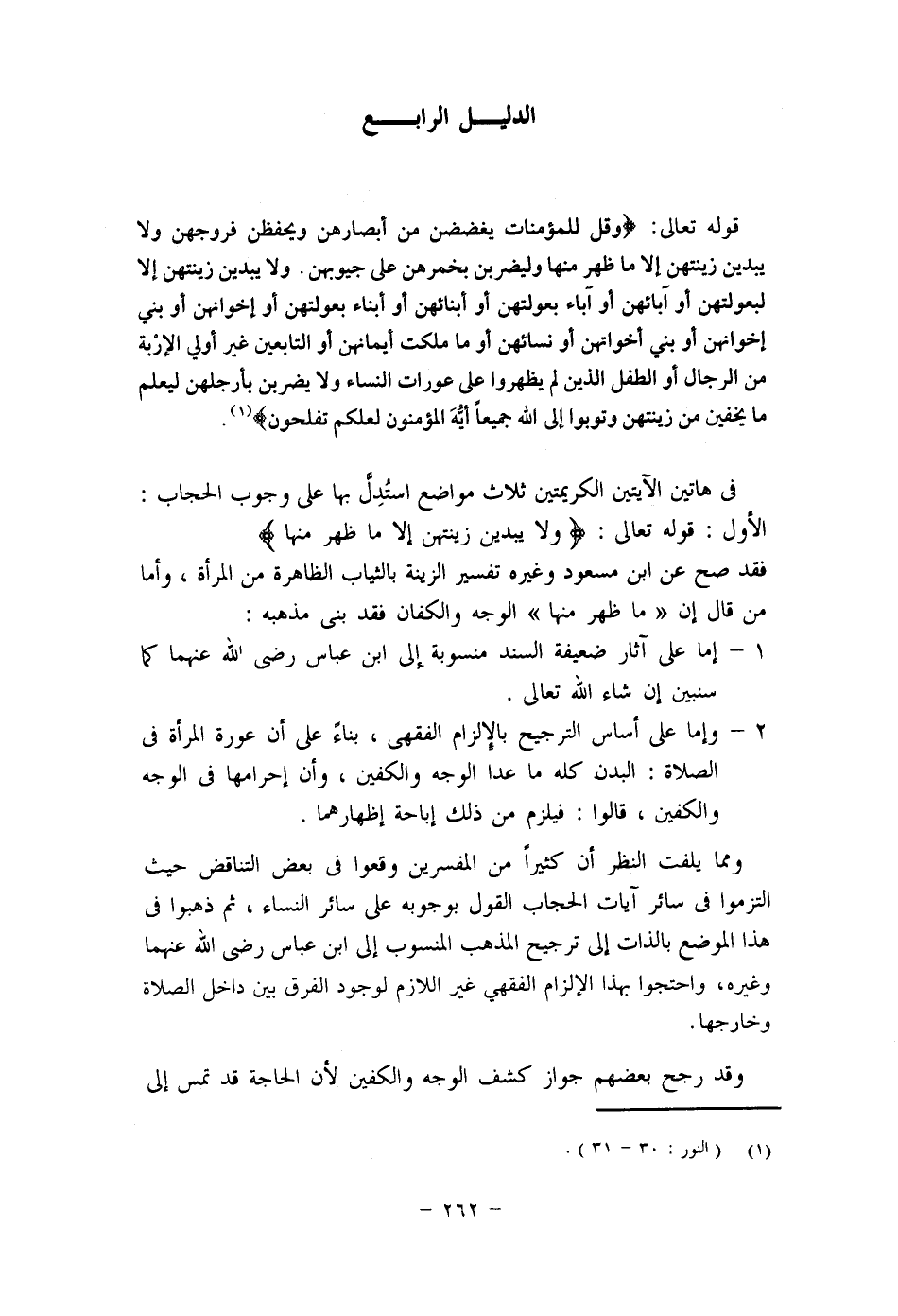 "للحجاب الشرعي المأمور به ثلاث درجات بعضها فوق بعض في الاحتجاب والاستتار، دل عليها الكتاب والسنة، الأولى: حجاب