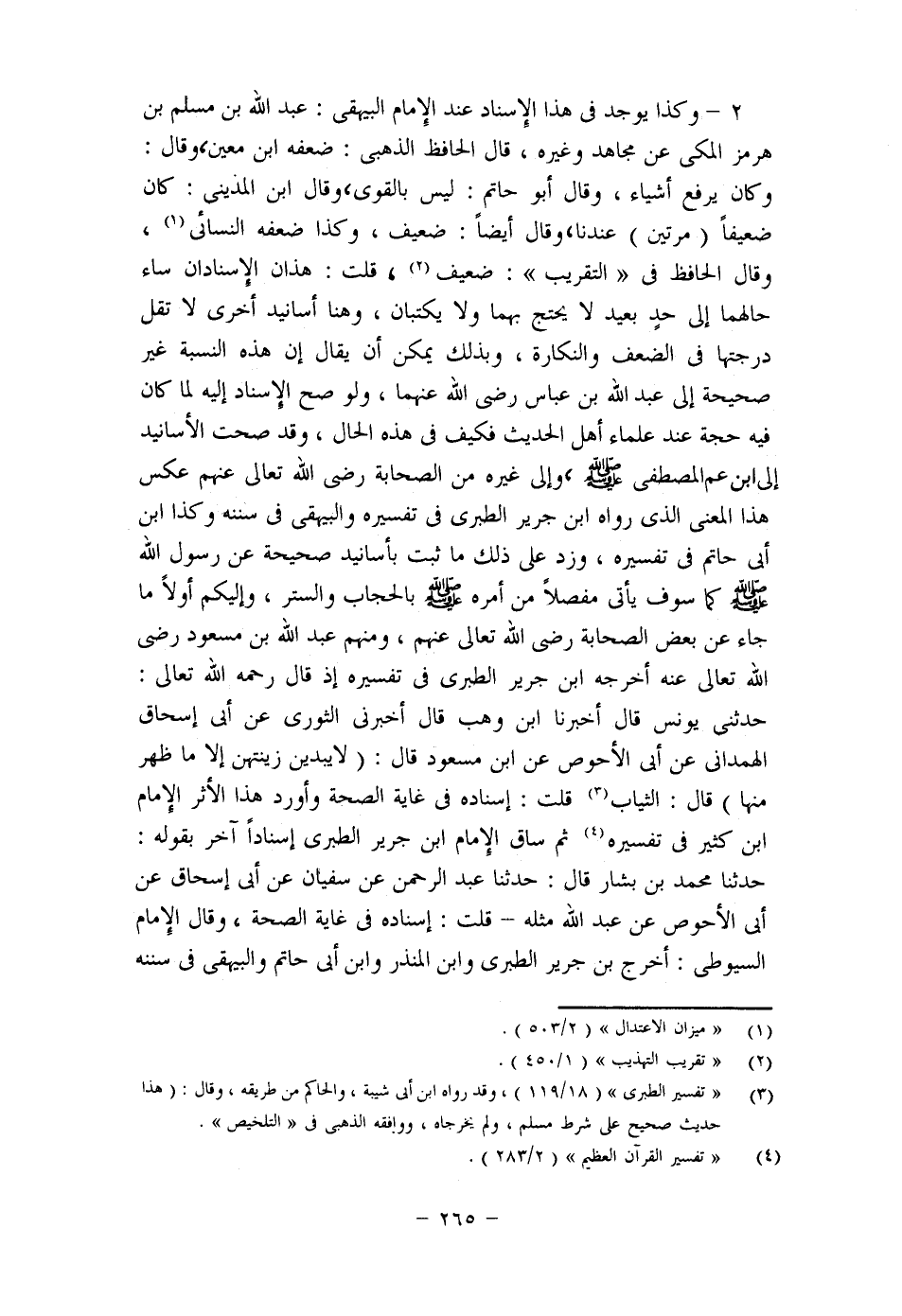 "هذا؛ وإنك لو تصفحت نصوص العلماء لا تكاد تجد أحدًا يقول بتخصيص الحجاب بأمهات المؤمنين، والحجاب الذي جعله من جعله خاصًّا بهن هو قدر زائد على الحجاب المعروف الذي نحن في بحثه، ويتضح ذلك بالتأمل في نصوصهم.