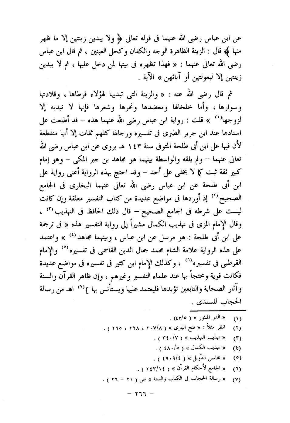 = الخروج سافرات- معار ض لما حكاه القاضي عياض عن العلماء أنه لا يجب على المرأة ستر وجهها في طريقها، وإنما ذلك سنة، وعلى الرجال غض البصر عنهن للآية، وحكاه المصنف- أي النووي عليه الرحمة- في شرح مسلم، وأقره عليه.