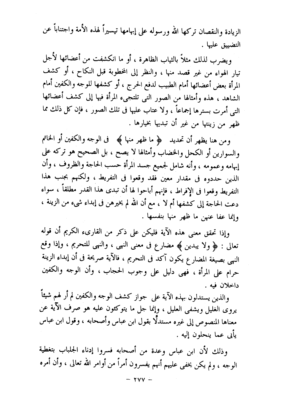 ويمكن أن يراد بالجاهلية الأخرى ما يقع في الإِسلام من التشبه بأهل الجاهلية بقول أو فعل، فيكون المعنى: ولا تبرجن أيها المسلمات بعد إِسلامكن تبرجًا مثل تبرج أهل الجاهلية التي كنتن عليها، وكان عليها من قبلكن، أي: لا تحدثن بأفعالكن وأقوالكن جاهلية تشبه الجاهلية التي كانت من قبل" (2) اهـ.