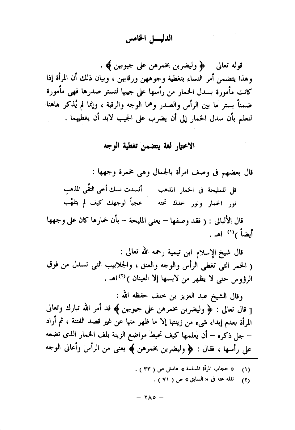 (3) "السنن الكبرى" (2/ 225) ، (7/ 852) ، وقال الشيخ منصور بن إدريس البهوتي رحمه الله: (وَلَا يُبْدِينَ زِينَتَهُنَّ إِلَّا مَا ظَهَرَ) قال ابن عباس=