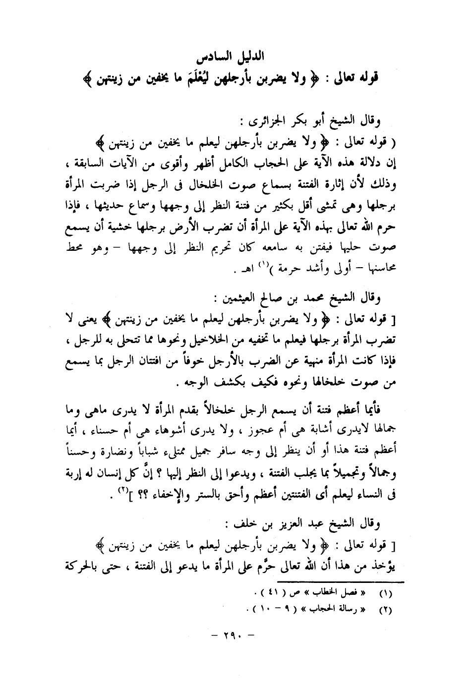 (1) "حجاب المرأة ولباسها في الصلاة" ص: 13 – 17، "مجموع الفتاوى" (22/ 110) ، ويتضح من هذا أن شيخ الإسلام يذهب إلى وقوع النسخ في مراحل تشريع الحجاب قال رحمه الله: (وعكس ذلك الوجه واليدان والقدمان ليس لها