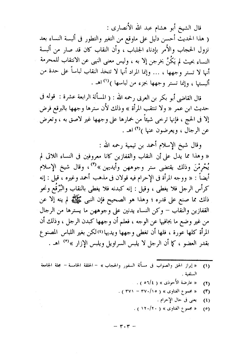 "وقد رأيت في هذه النقول المذكورة عن السلف أقوال أهل العلم في الزينة الظاهرة والباطنة، وأن جميع ذلك راجع في الجملة إلى ثلاثة أقوال كما ذكرنا: