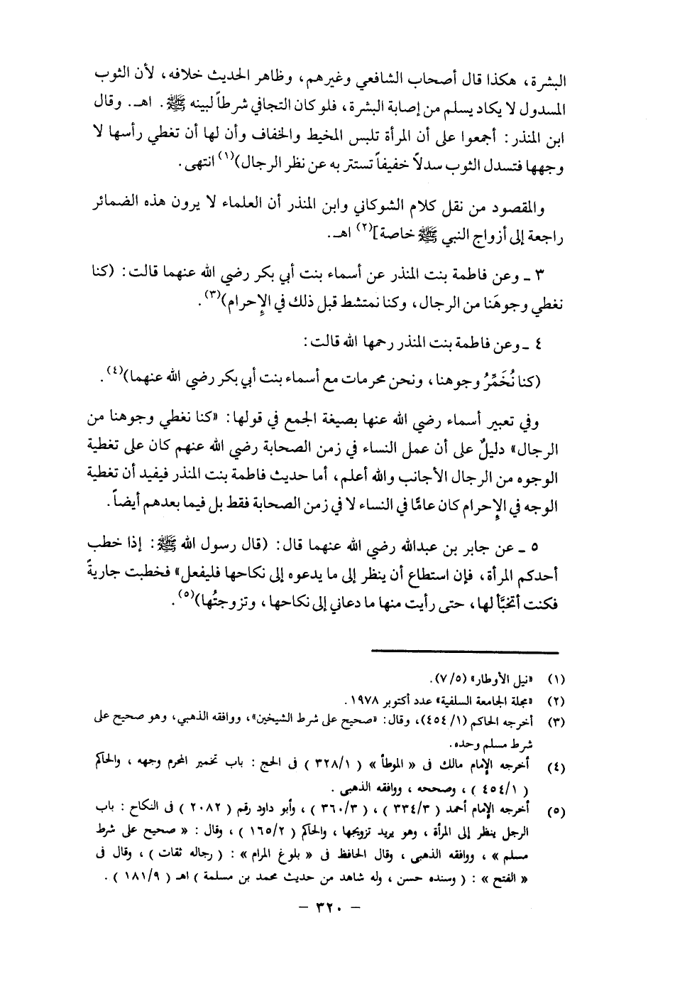 يلبسن الجلابيب، وعن الشعبي قال: ترك ذلك، يعني ترك وضع الثياب" (1) اهـ.