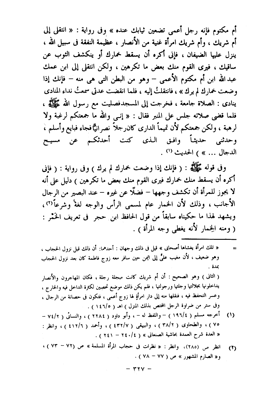 وأبعد لهن عن أسباب الفتنة" (2) اهـ.
