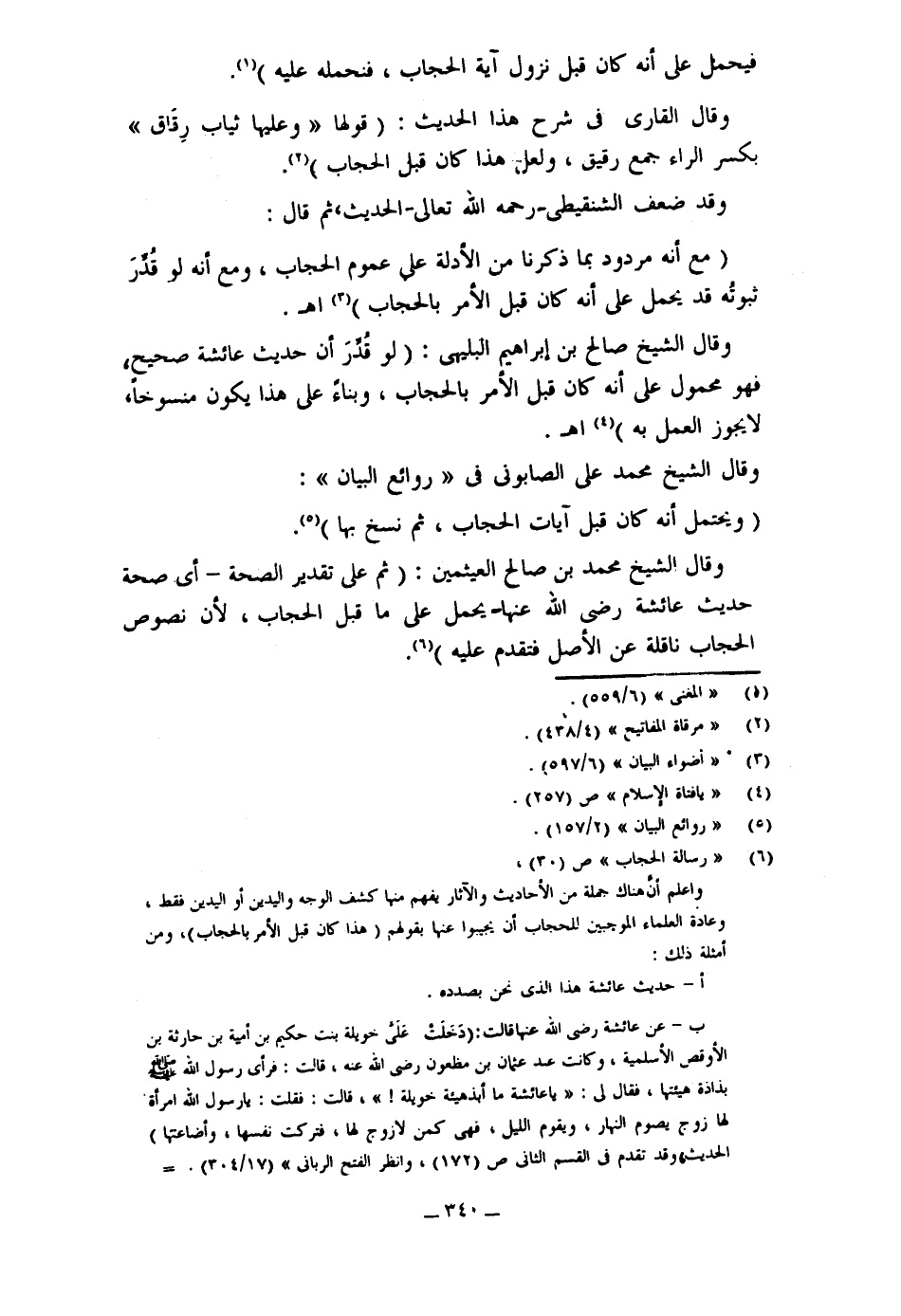 5- عن عائشة رضي الله عنها: أن أفلح أخا أبي القعَيس جاء يستأذن عليها، وهو عمها من الرضاعة بعد أن نزل الحجاب، قالت: "فَأبَيْتُ أن