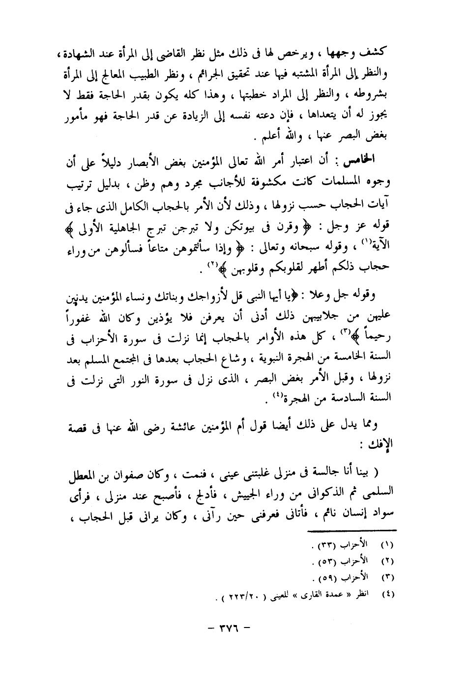 (1) لا يتَصَوَّرُ أن تأمر الآية والأحاديث الصحيحة المؤمنين بغض الأبصار، في حين نجد في هذا الحديث تصريحًا بإباحة النظر إن الوجه والكفين مِمّا يوجب تأويل