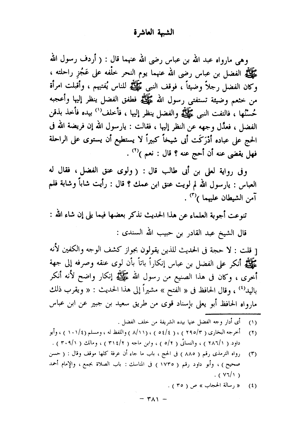 كما أنه مخالف لحال أمهات المؤمنين ونسائهم، وقد قال رسول الله