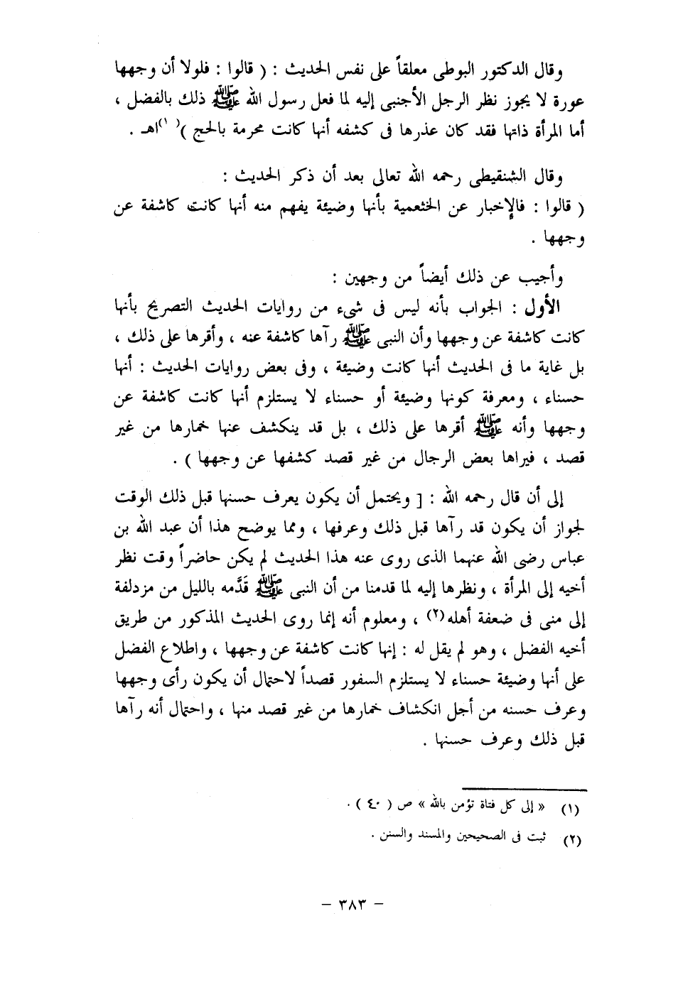 (2) "نظرات في حجاب المرأة المسلمه" ص (66-67) .