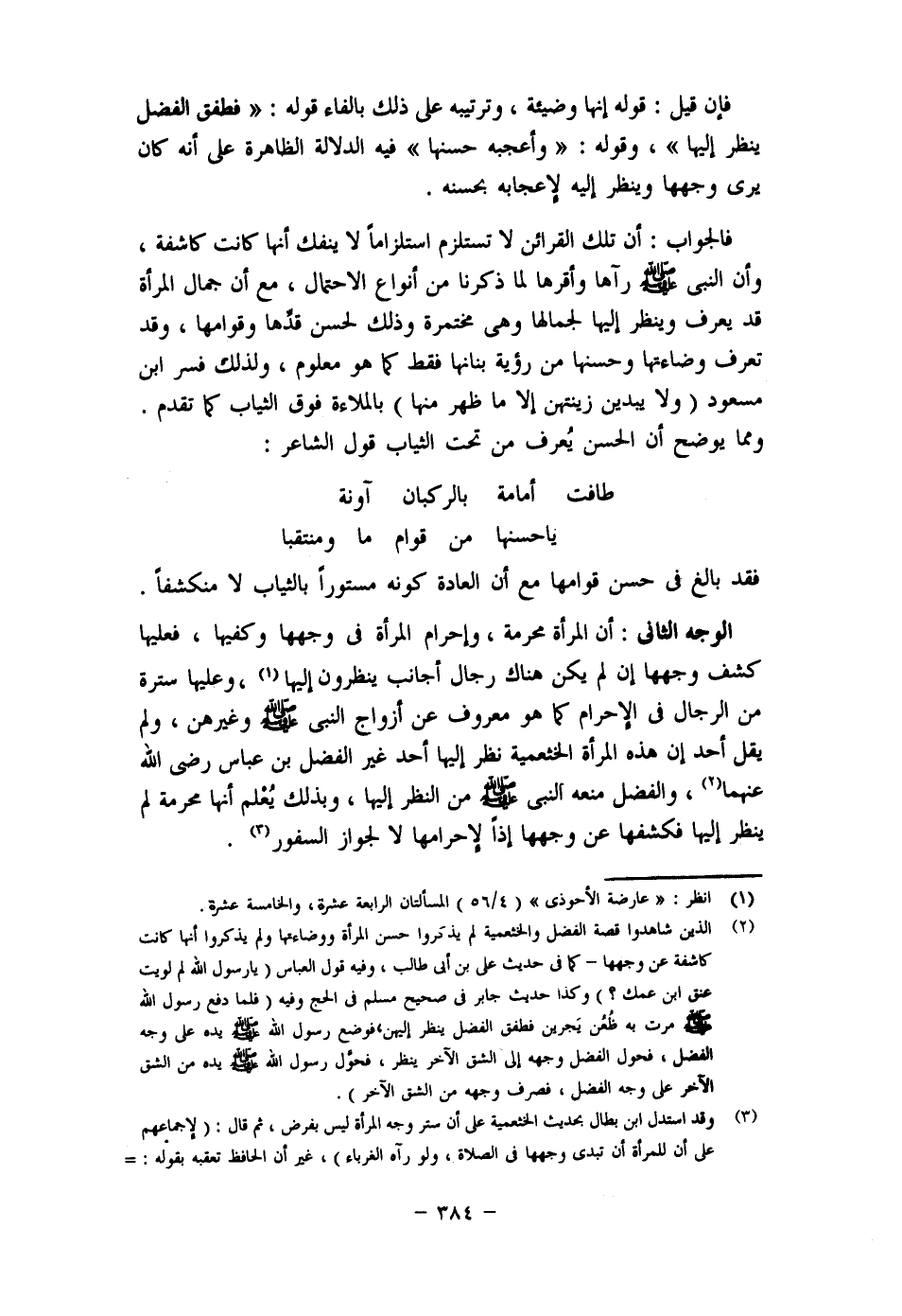 وحكمة الشرع تأبى أن يجب ستر ما هو أقل فتنة، ويرخص كشف ما هو أعظم منه فتنة، فإن هذا من التناقض المستحيل على حكمة الله وشرعه.