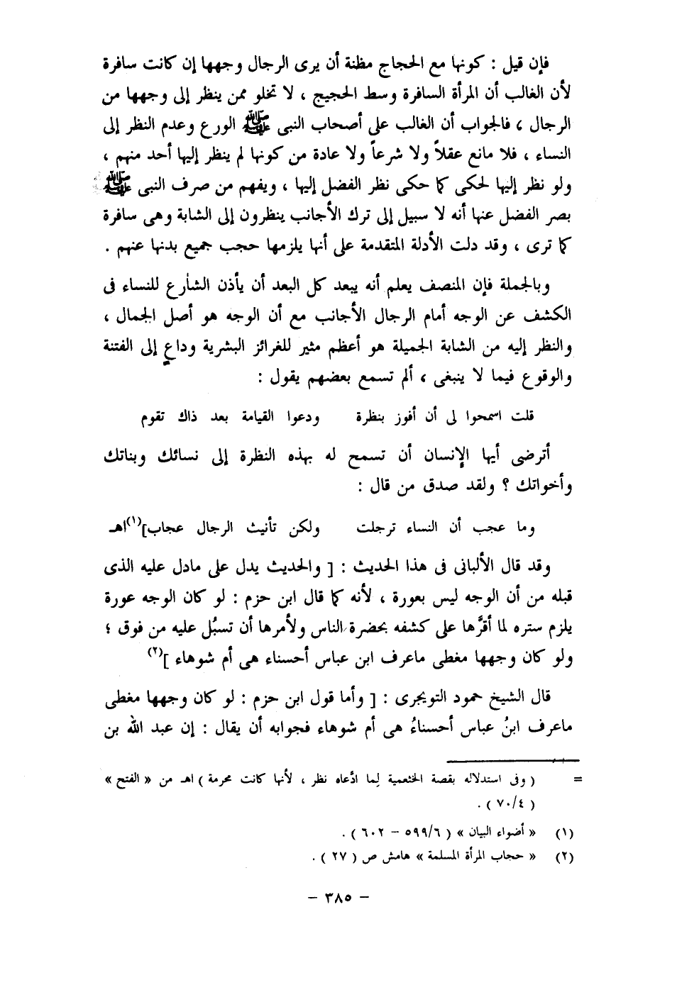 (1) "مسالة السفور والحجاب" لأبي هشام الأنصاري - مجلة الجامعة السلفية، ص (77) ، عدد نوفمبر، ديسمبر 1978م.