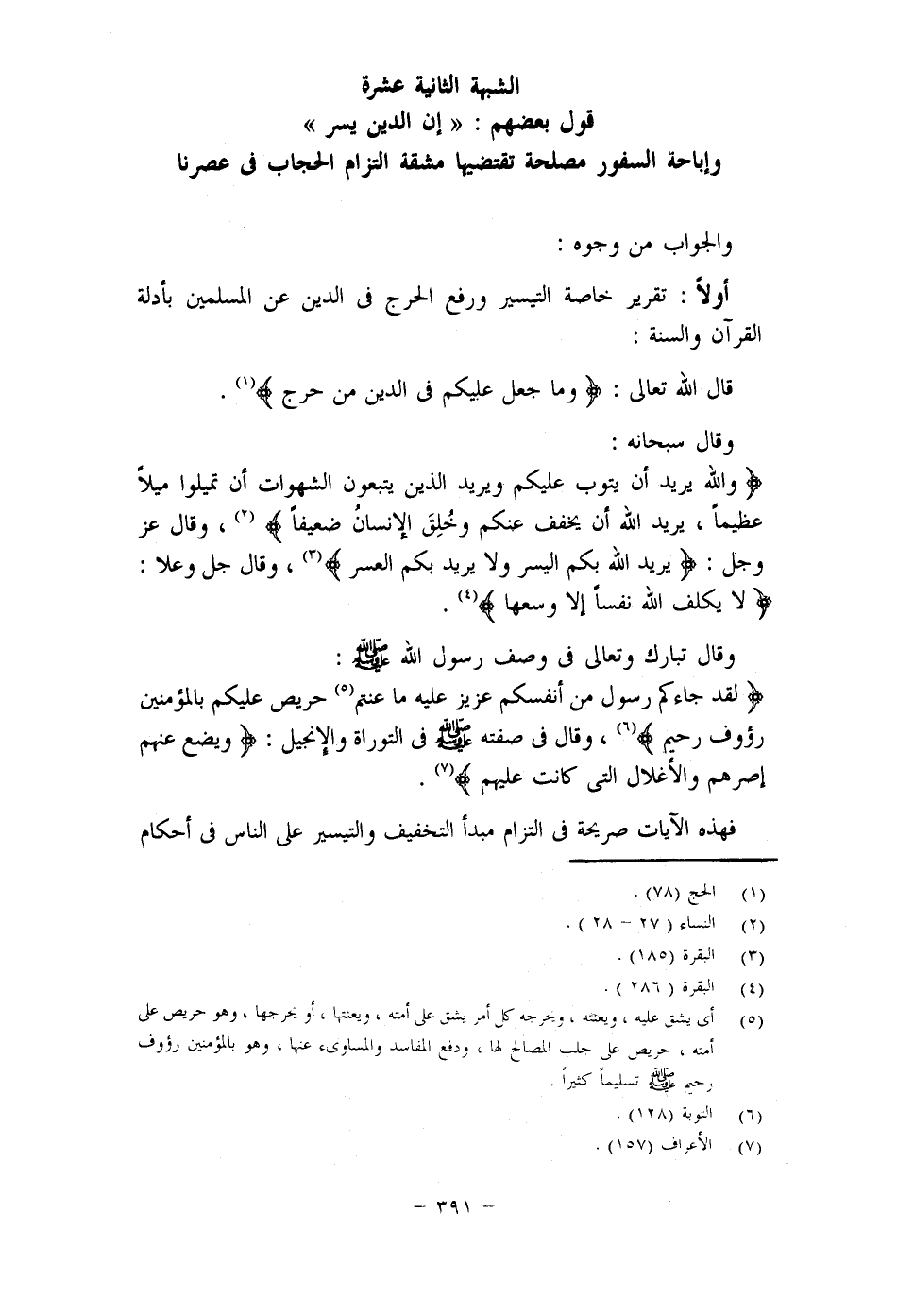 عنده الاحتجاج به قال: "وقد جرى العمل عليه عند النساء في عهد النبي صلى الله عليه وسلم حيث كن يكشفن عن وجوههن وأيديهن بحضرته صلى الله عليه وسلم وهو لا ينكر