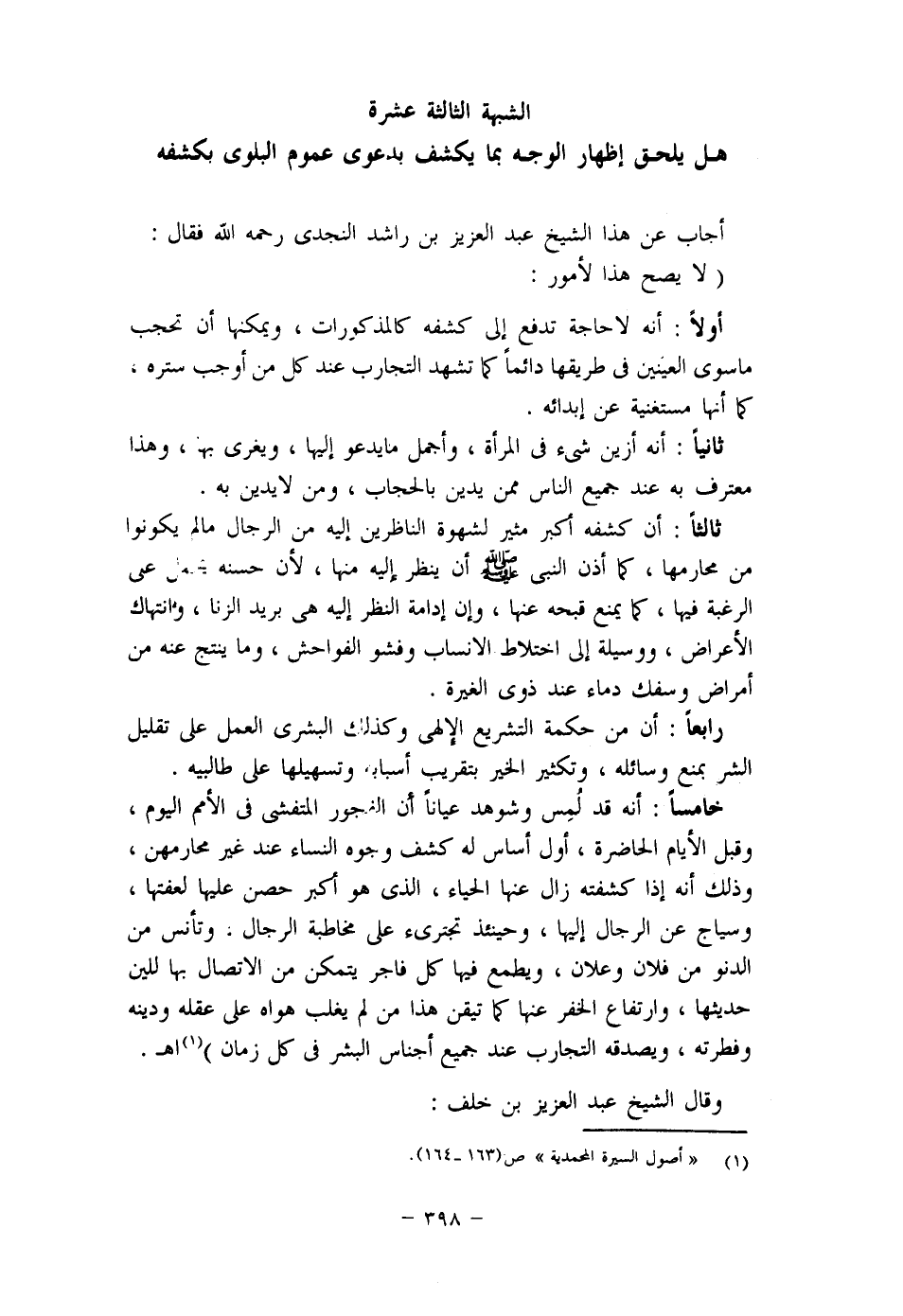 (1) انظر: "الصارم المشهور" ص 122، "نظرات" ص 68، "رسالة الحجاب" (ص 32) ، "فصل الخطاب" ص 96، "الحجاب" للسندي (ص 44 – 45)