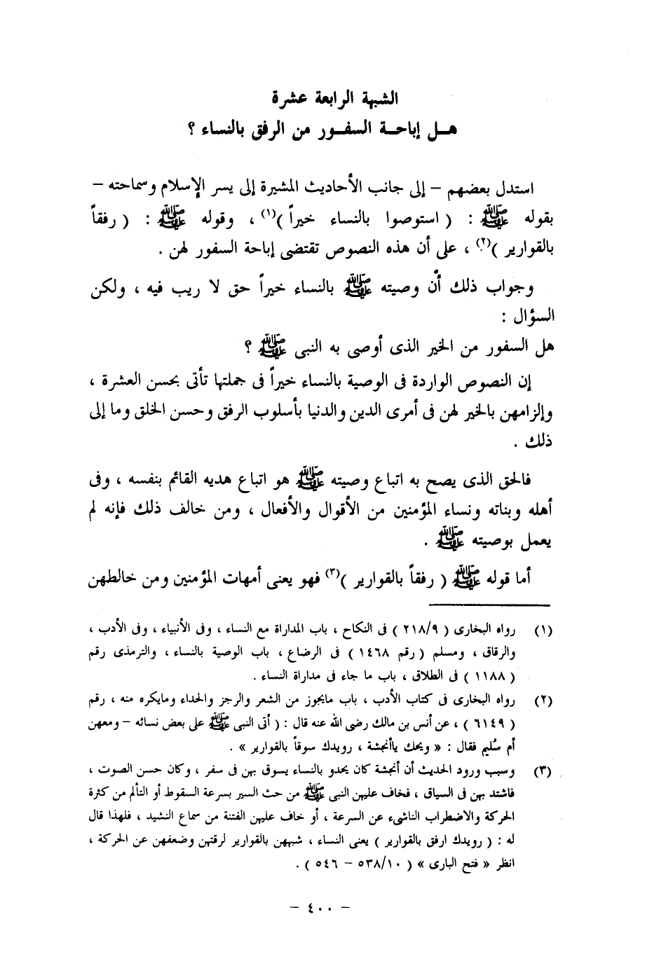 "وأما حديث جابر فليس فيه أنه كان بعد نزول آيات الحجاب حتى يصلح دليلًا لما ذهب إليه مَن جوَّز كشف وجه المرأة، ولم يوجب حجبه عن الأجنبي منها باجتهاد وحسن نية، ولو علم ما جَرَّ على المسلمين وغيرهم من الإباحية والشر لما أفتى بذلك ولو ضرب بالسياط ما لم يشرف على
