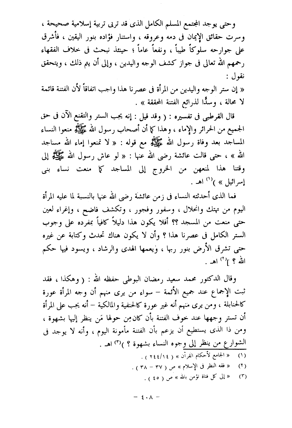 فاستنبطوا من الآية القرآنية الآمرة بغض البصر أن في المرأة شيئا مكشوفًا، ثم أثبتوا- باجتهادهم- أن هذا الشيء المكشوف هو الوجه والكفان، ثم استشهدوا لذلك بالأحاديث التي فيها أيضًا أمر بغض البصر.