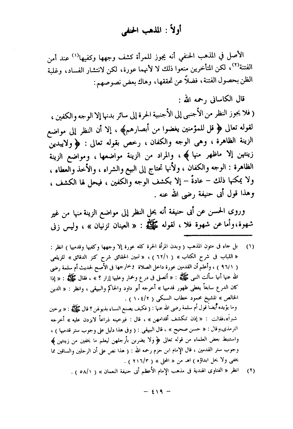 بحديث الفضل بن العباس ونظره إلى الخثعمية وصرف النبي صلى الله عليه وسلم وجه الفضل عنها، فهذا من غرائب الاستدلال لأن الحديث يدل على خلاف