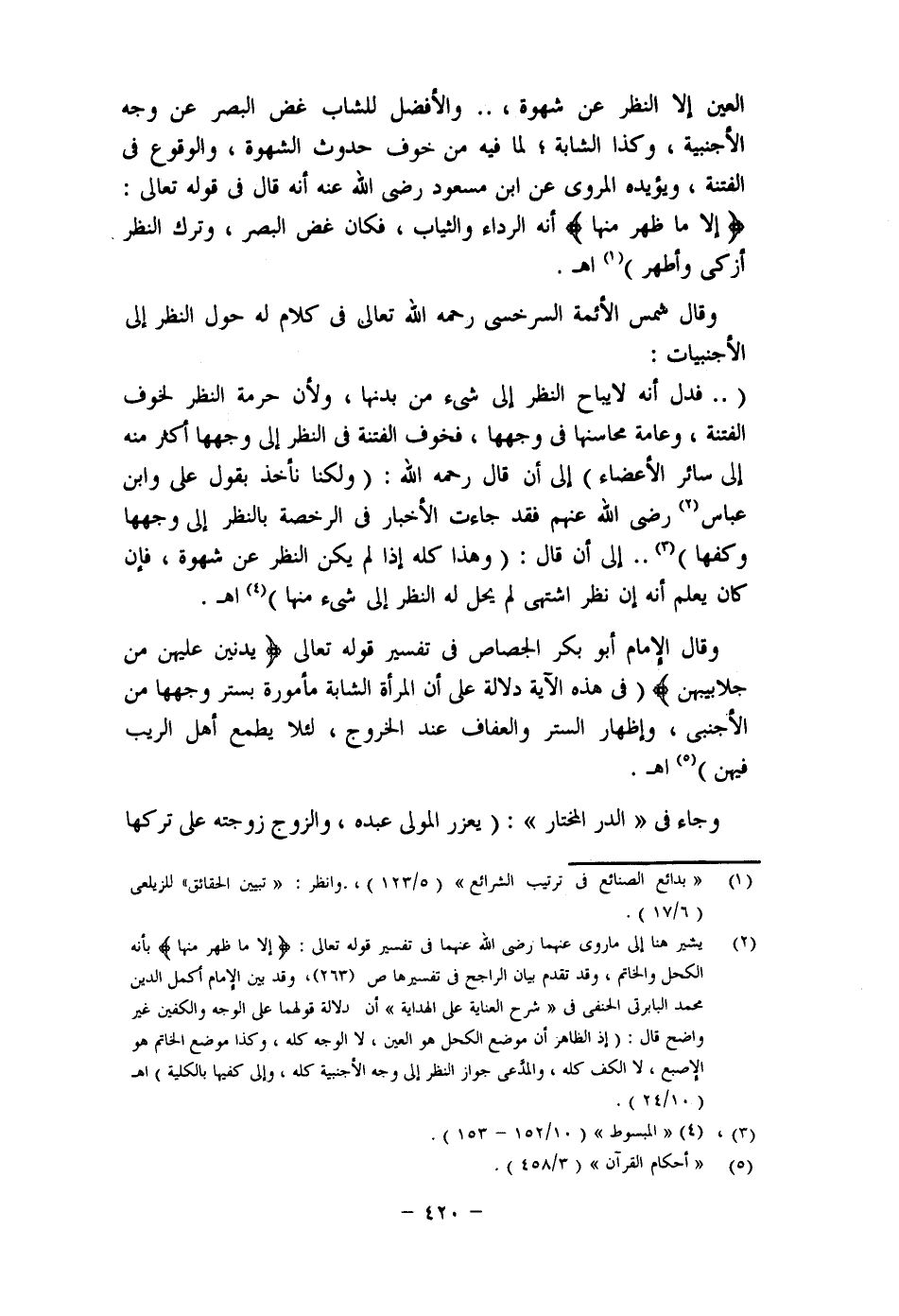 بالفضل، أما المرأة ذاتها فقد كان عذرها في كشفه أنها كانت محرمة بالحج" (1) اهـ.