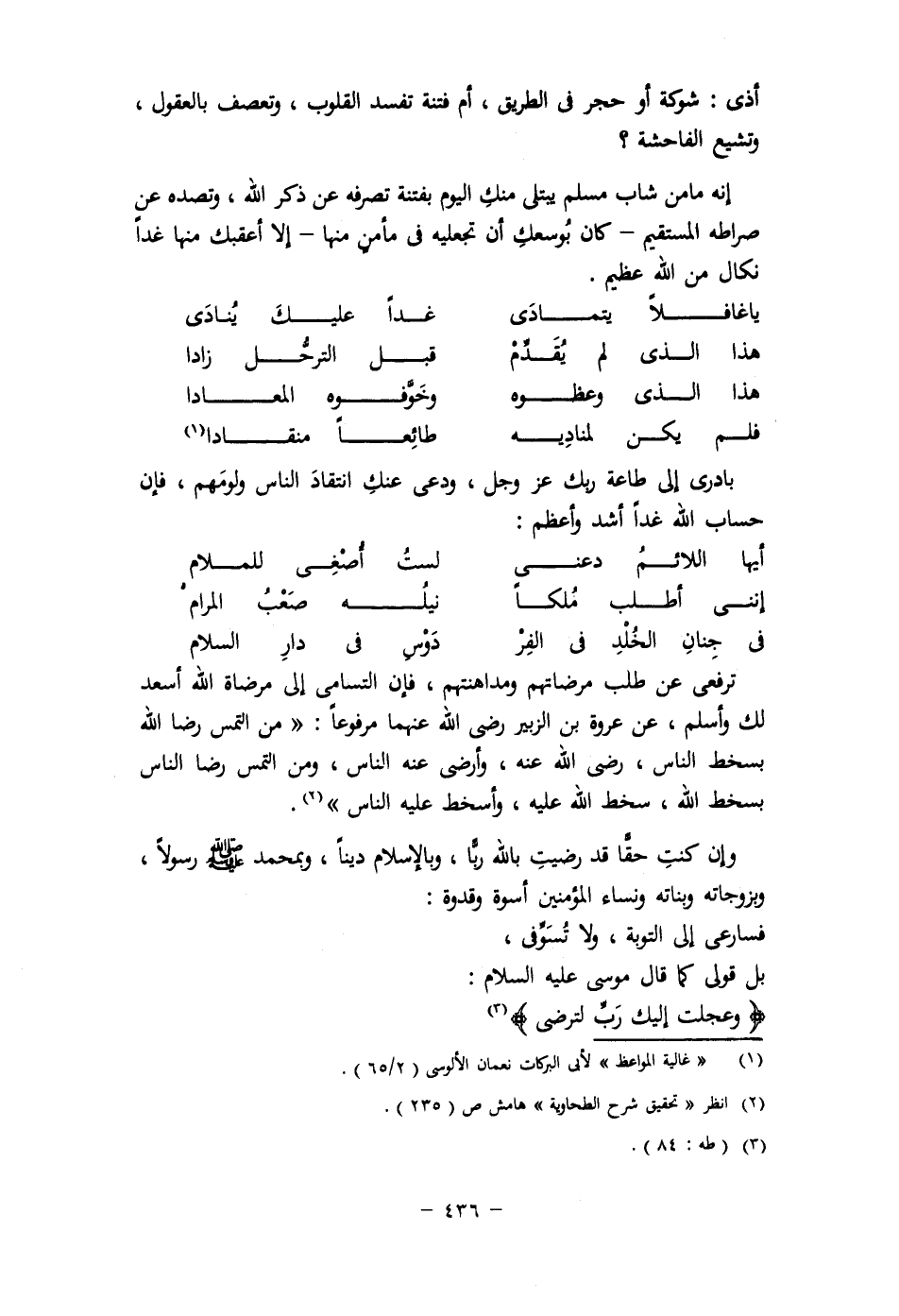 (2) وعليه فلا ينبغي أن نقصد في أعمالنا المشقات ونتحرى الاستزادة منها، ظانين أن وراء ذلك الأجر العظيم، وأن الثواب على قدر المشقة، فهذا يخالف قصد الشارع، فمن ترك طريقًا معبدَا إلى المسجد، وسلك طريقا آخر فيه عقبات يبتغي بذلك زيادة الأجر، فقد أخطأ القصد، ولا ثواب له، قال صلى الله عليه وسلم: "هلك المتنطعون" قالها ثلاثًا، أخرجه مسلم رقم (2670) في العلم، باب "هلك المتنطعون"، وأبو داود رقم (4608) في السنة، باب في لزوم السنة.