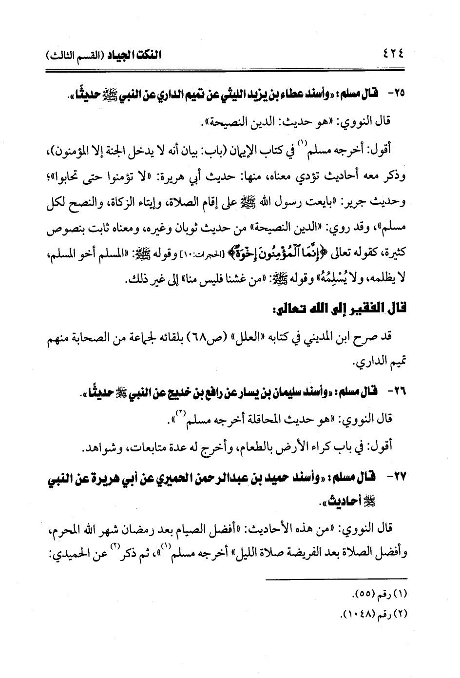 25 - قال مسلم: "وأسند عطاء بن يزيد الليثي عن تميم الداري عن النبي -صلى الله عليه وسلم- حديثًا".