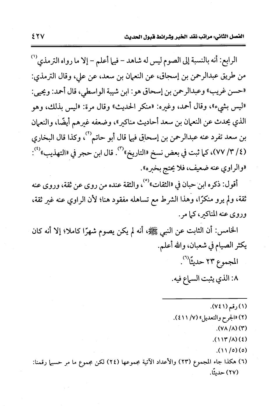 (¬6) هكذا جاء المجموع (23) والأعداد الآتية مجموعها (24) لكن مجموع ما مر حسبما رقمنا: (27) حديثًا.