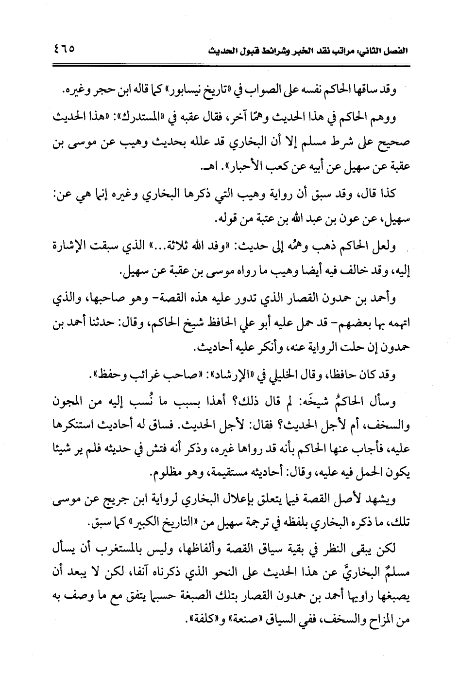 ووهم الحاكم في هذا الحديث وهمًا آخر، فقال عقبه في "المستدرك": "هذا الحديث صحيح على شرط مسلم إلا أن البخاري قد علله بحديث وهيب عن موسى بن عقبة عن سهيل عن أبيه عن كعب الأحبار". اهـ.