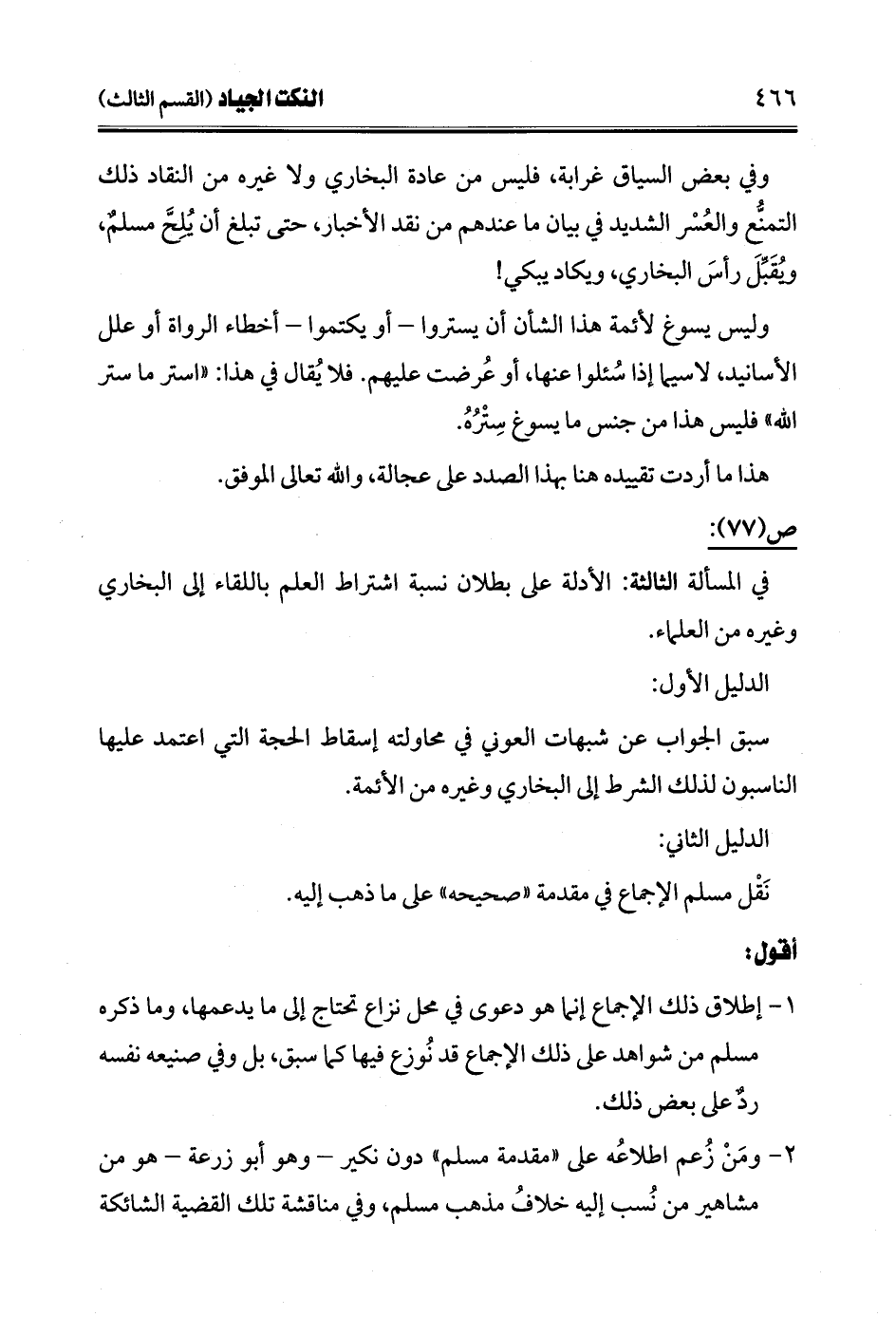 1 - إطلاق ذلك الإجماع إنما هو دعوى في محل نزل تحتاج إلى ما يدعمها، وما ذكره مسلم من شواهد على ذلك الإجماع قد نُوزع فيها كما سبق، بل وفي صنيعه نفسه ردٌ على بعض ذلك.