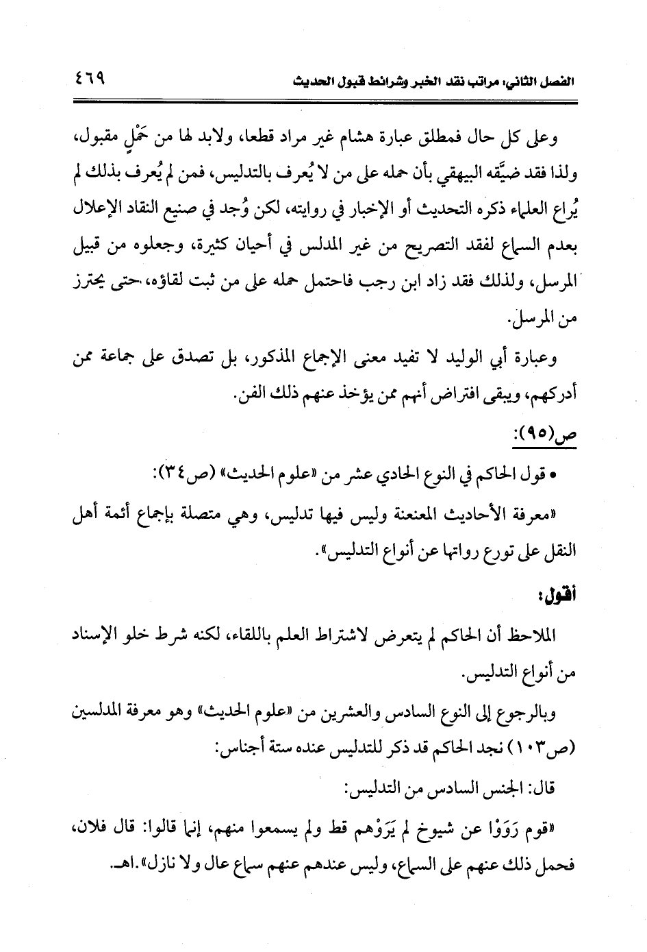 وبالرجوع إلى النوع السادس والعشرين من "علوم الحديث" وهو معرفة المدلسين (ص 103) نجد الحاكم قد ذكر للتدليس عنده ستة أجناس: