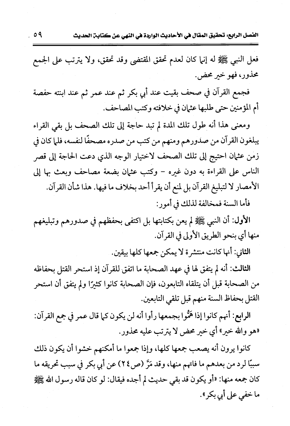 الرابع: أنهم كانوا إذا هَمُّوا بجمعها رأوا أنه لن يكون كما قال عمر في جمع القرآن: "هو والله خير" أي خير محض لا يترتب عليه محذور.