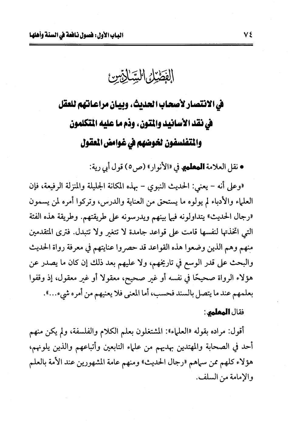 • نقل العلامة المعلمي في "الأنوار" (ص 5) قول أبي رية: