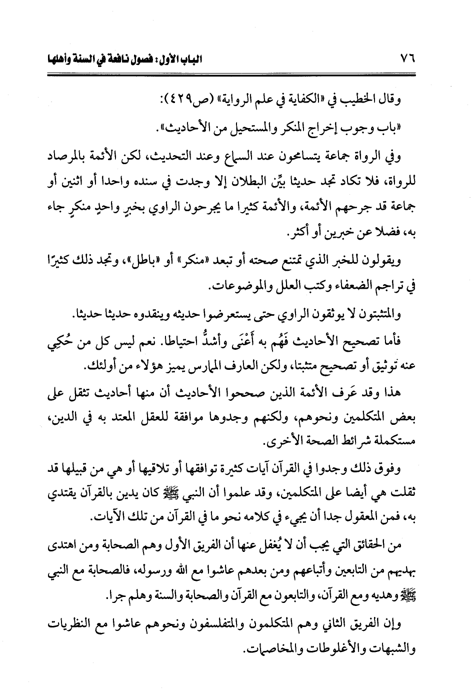 "باب وجوب إخراج المنكر والمستحيل من الأحاديث".
