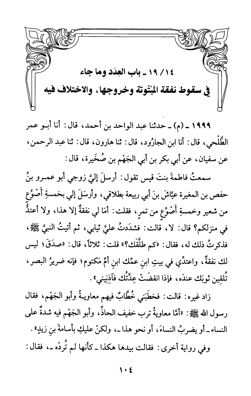 [14/ 19] باب العدد وما جاء في سقوط نفقة المبتوتة وخروجها، والاختلاف فيه