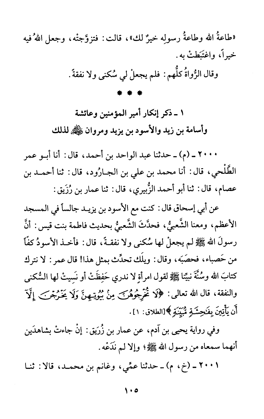 [1] ذكر إنكار أمير المؤمنين وعائشة وأسامة بن زيد والأسود بن يزيد ومروان رضي الله عنهم لذلك