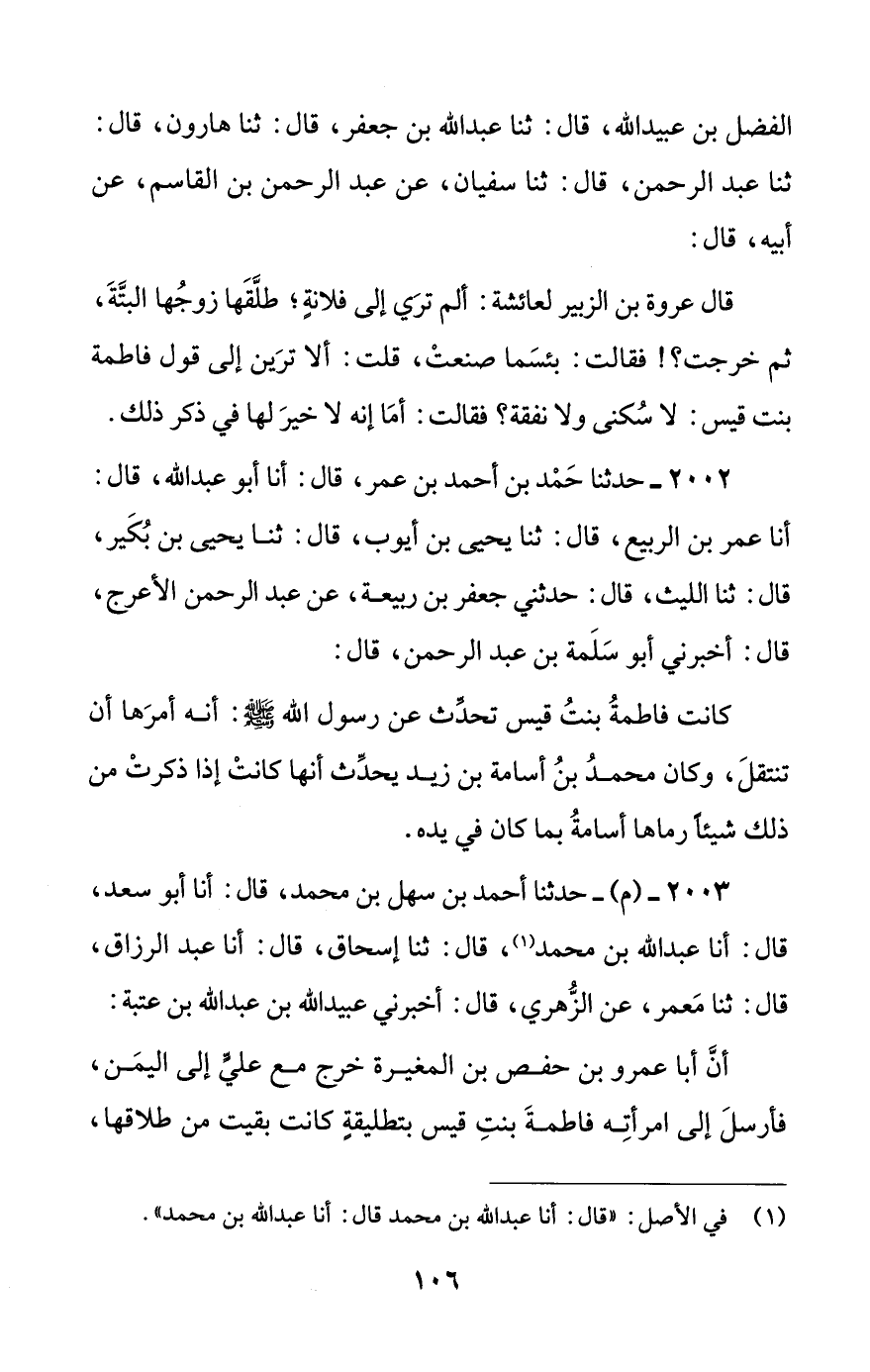 2002 - حدثنا حمد بن أحمد بن عمر، قال: أنا أبو عبد الله، قال: أنا عمر بن الربيع، قال: ثنا يحيى بن أيوب، قال: ثنا يحيى بن بكير، قال: ثنا الليث، قال: حدثني جعفر بن ربيعة، عن عبد الرحمن الأعرج، قال: أخبرني أبو سلمة بن عبد الرحمن، قال: