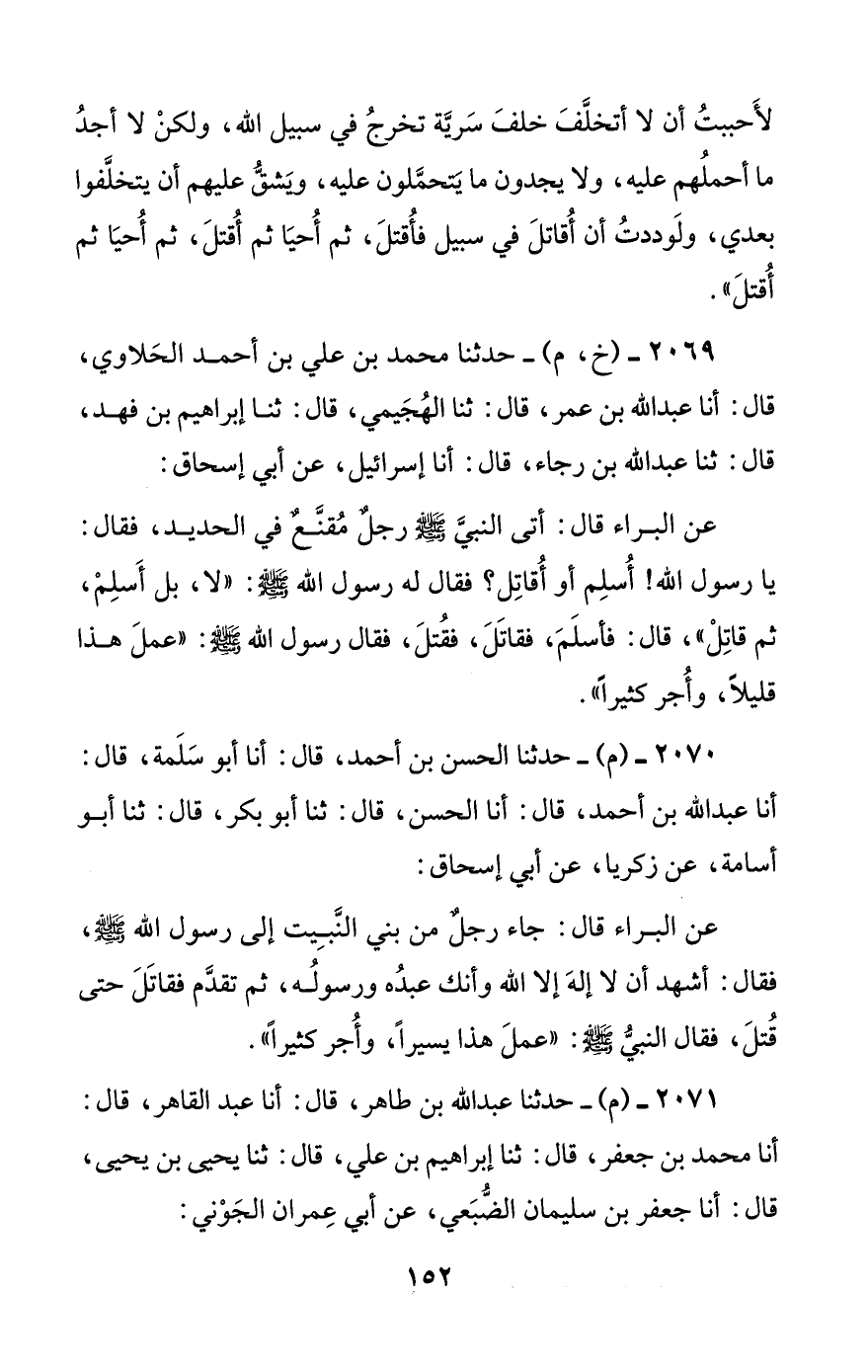 2069 - (خ، م) - حدثنا محمد بن علي بن أحمد الحلاوي، قال: أنا عبد الله بن عمر، قال: ثنا الهجيمي، قال: ثنا إبراهيم بن فهد، قال: ثنا عبد الله بن رجاء، قال: أنا إسرائيل، عن أبي إسحاق: