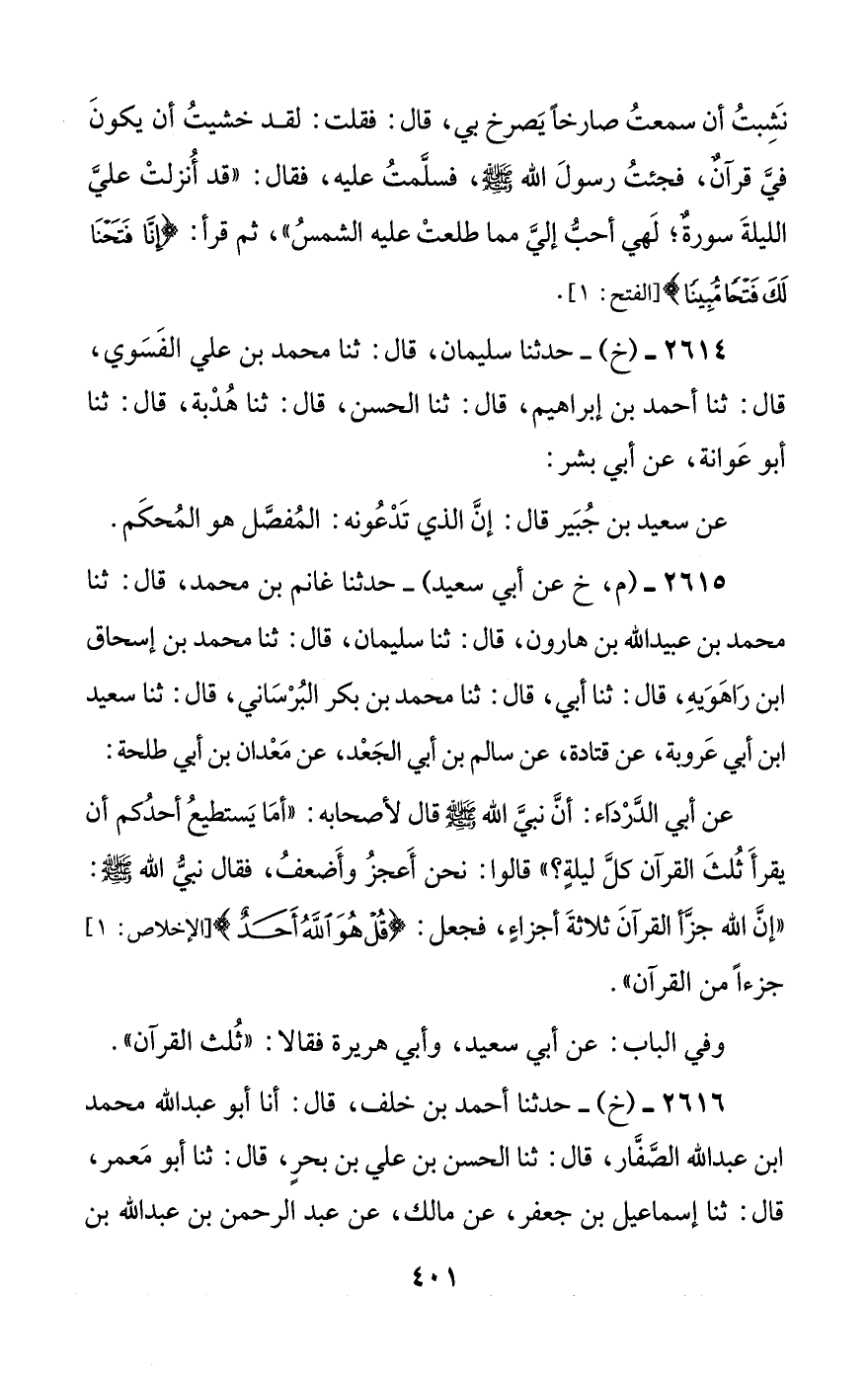 2614 - (خ) - حدثنا سليمان، قال: ثنا محمد بن علي الفسوي، قال: ثنا أحمد بن إبراهيم، قال: ثنا الحسن، قال: ثنا هدبة، قال: ثنا أبو عوانة، عن أبي بشر: