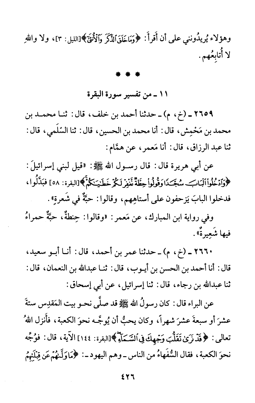 2660 - (خ، م) - حدثنا عمر بن أحمد، قال: أنا أبو سعيد، قال: أنا أحمد بن الحسن بن أيوب، قال: ثنا عبد الله بن النعمان، قال: ثنا عبد الله بن رجاء، قال: ثنا إسرائيل، عن أبي إسحاق: